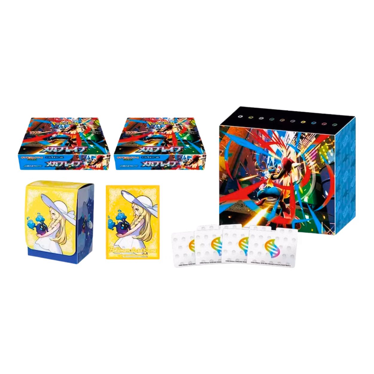 2 x Boosterbokser fra Mega Brave: Disse boksene inneholder 30 boosterpakker hver med 5 kort per pakke, totalt 60 pakker.