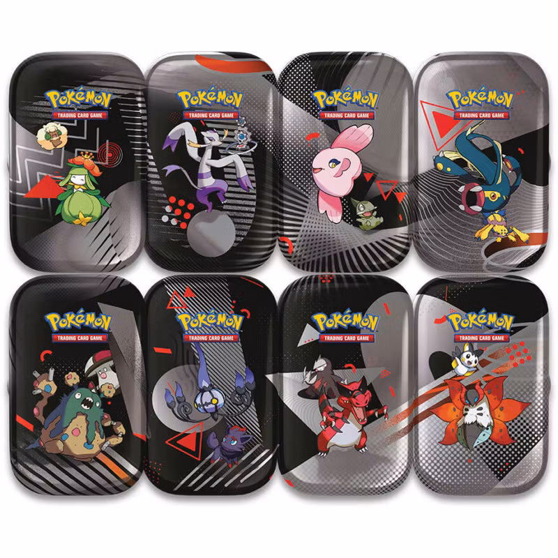En mini tin inneholder 2.stk booster pakker. (1. Black bolt og 1 White flate).